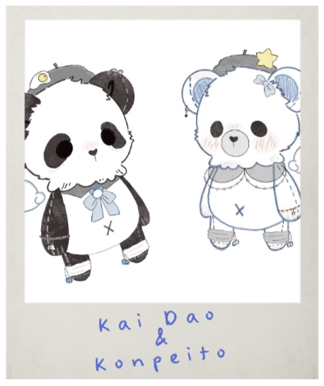 This is Kai Dao the Panda and Konpeito the Polar bear! They are star guardians that protect the light in our hearts! They were the first friends I made when I came to this new world! They love to come on adventures with me and help me manage the arcade!